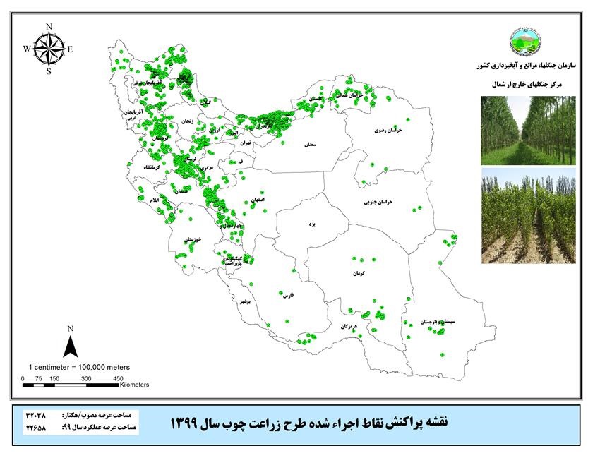 سال 99 نقشه پراکنش نقاط اجرایی طرح زراعت چوب و اطلاعات رقومی مربوط به
