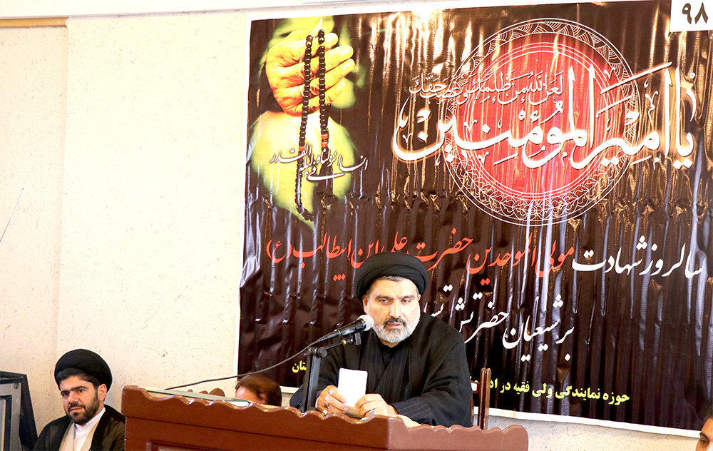 همزمان با ایام سوگواری شهادت مولی الموحدین حضرت علی (ع) مراسم عزاداری و سینه زنی با حضور حجت الااسلام والمسلمین تقی زاده از فضلای حوزه علمیه قم و حجت الاسلام والمسلمین حیات الغیب مسئول دفتر نمایندگی ولی فقیه و کارکنان اداره کل برگزار گردید.