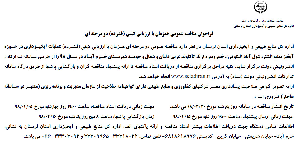 فراخوان مناقصه عمومي همزمان با ارزيابي كيفي (فشرده) دو مرحله اي