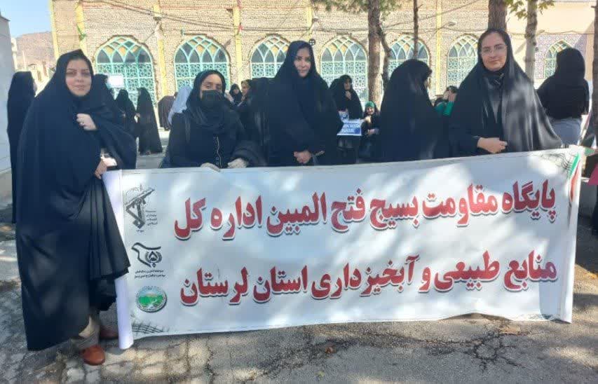 در روز ملی مبارزه با استکبار جهانی آمریکا و در لبیک و اطاعت از فرمان حضرت امام خامنهای مدظله العالی، کلیه کارکنان بسیجی اداره کل منابع طبیعی و آبخیزداری استان لرستان همراه و همقدم با مردم ولایتمدار خرم آباد در مراسم یوم الله ۱۳ آبان شرکت نموده و با گرامیداشت مناسبتهای تاریخی این روز بزرگ و محکوم کردن جنایات رژیم منحوس و کودک کش صهیونیستی، بار دیگر با آرمان های امام، انقلاب و شهدای عزیز بیعت نمودند.